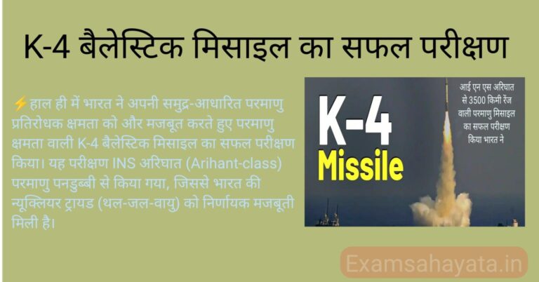 🔹भारत का सामरिक शक्ति प्रदर्शन: K-4 बैलेस्टिक मिसाइल का सफल परीक्षण हाल ही में भारत ने अपनी समुद्र-आधारित परमाणु प्रतिरोधक क्षमता…
